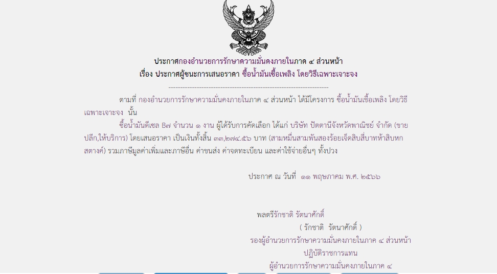 จัดซื้อ จัดจ้างประกาศผู้ชนะการเสนอราคา ประกาศผู้ชนะการเสนอราคา ซื้อน้ำมันเชื้อเพลิง โดยวิธีเฉพาะเจาะจง May 31, 2023 406 Share Facebook Twitter Google+ Telegram LINE
