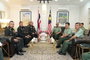 ในโอกาสนี้ ได้เยี่ยมคำนับ พลโท DATO’ TENGKU MUHAMMAD FAUZI BIN TENGKU IBRAHIM ผบ.กกล.ทบ.สนาม ตต.มซ./ประธานคณะกรรมการชายแดนส่วนภูมิภาคฝ่าย มซ. อย่างเป็นทางการ ณ บก.กกล.ทบ.สนาม ตต. มซ. ค่ายเปอร์ดานา สุไหงเบสี กรุงกัวลาลัมเปอร์ เพื่อร่วมแสดงความยินดีในโอกาสดำรงตำแหน่ง ผบ.กกล.ทบ.สนาม ตต.มซ. ท่านใหม่ และหารือกิจกรรมทวิภาคี ไทย – มาเลเซีย ภายใต้กรอบคณะกรรมการชายแดนส่วนภูมิภาคและงานมอบจากคณะกรรมการระดับสูง รวมถึงการแลกเปลี่ยนพัฒนาความสัมพันธ์ระหว่างหน่วยทหารและตำรวจตามแนวชายแดนไทย – มาเลเซีย และการหารือการจัดการประชุมคณะกรรมการชายแดนส่วนภูมิภาค (กชภ.) ครั้งที่ 113 โดยฝ่ายไทยเป็นเจ้าภาพ