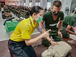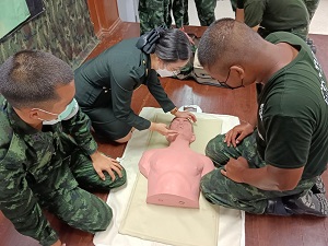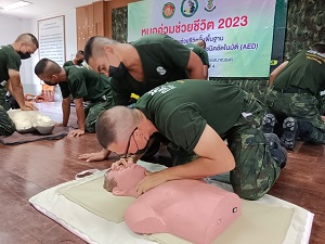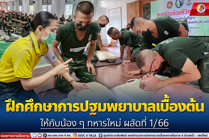 กองพันมณฑลทหารบกที่ 42 ทำการฝึกให้ความรู้การปฐมพยาบาลเบื้องต้นให้กับทหารใหม่ ผลัดที่ 1 ประจำปี 2566 ณ หน่วยฝึกทหารใหม่กองพันมณฑลทหารบกที่ 42 ค่ายเสนาณรงค์ อำเภอหาดใหญ่ จังหวัดสงขลา โดยจัดอบรมในเรื่อง การช่วยฟื้นคืนชีพเบื้องต้น(CPR), การใช้เครื่องช่วยชีวิตฉุกเฉิน AED, โรคติดต่อในหน่วยทหาร, การป้องกันเฝ้าระวัง, การปฐมพยาบาลการบาดเจ็บจากความร้อน ทั้งนี้เพื่อให้ทหารใหม่ทุกนาย โดยมี โรงพยาบาลค่ายเสนาณรงค์ให้ความรู้ ความสามารถ ในการปฐมพยาบาลเบื้องต้นก่อนที่จะส่งตัวผู้ป่วยไปรับการรักษาต่อไป