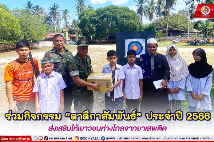 หน่วยเฉพาะกิจนาวิกโยธิน กองทัพเรือ จัดกิจกรรม “ตาดีกาสัมพันธ์ ประจำปีงบประมาณ 2566 ในวันเสาร์ที่ 10 มิถุนายน 2566 ตั้งแต่เวลา 08.00 -12.00 น. ในพื้นที่ค่ายจุฬาภรณ์ ตำบลโคกเคียน อำเภอเมืองนราธิวาส จังหวัดนราธิวาส เพื่อให้เด็กและเยาวชนได้มีโอกาสเล่นกีฬา พัฒนาทักษะด้านกีฬาพื้นบ้าน ส่งเสริมความคิดสร้างสรรค์ ตลอดจนการกล้าแสดงออก ซึ่งเป็นการใช้เวลาว่างให้เกิดประโยชน์ ทำให้ห่างไกลยาเสพติด อีกทั้งเป็นการสร้างความรัก ความสามัคคี มีน้ำใจเป็นนักกีฬารู้แพ้ รู้ชนะ รู้อภัย ตลอดจนเป็นการส่งเสริมความสัมพันธ์อันดี มีความร่วมมือร่วมใจระหว่างประชาชน หน่วยงานภาครัฐ และภาคเอกชน ในพื้นที่รับผิดชอบของหน่วย
