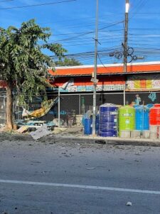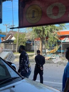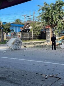หลังเกิดเหตุ พันเอก สิทธิชัย บำรุงเขต ผู้บังคับหน่วยเฉพาะกิจกรมทหารพรานที่ 46 พร้อมด้วย เจ้าหน้าที่ชุดเก็บกู้ทำลายวัตถุระเบิด หน่วยปฏิบัติการพิเศษกองกำกับการตำรวจภูธรจังหวัดนราธิวาส เจ้าหน้าที่กองพิสูจน์หลักฐานจังหวัดนราธิวาส เจ้าหน้าที่ตำรวจ ทหาร และฝ่ายปกครอง ลงพื้นที่ตรวจสอบที่เกิดเหตุ พบที่โค่นต้นไม้ใหญ่ปากซอยเจริญราษฎร์ 2 ซึ่งอยู่ด้านซ้ายมือของร้านมุสลิมรือเสาะการเกษตร ที่เป็นที่ตั้งของถังบรรจุน้ำสีฟ้า ขนาดถังบรรจุ 1,000 ลิตร ที่ใช้เป็นภาชนะในการจัดเก็บและขนส่งของเหลวแบบมีขาเหล็กกระเด็นไปขวางอยู่กลางถนน ส่วนโคนต้นไม้ที่คนร้ายแอบนำระเบิดของซุกไว้ ที่มีถังน้ำพลาสติกขนาดต่าง ๆ ทั้งสีขาว สีน้ำเงิน และสีเหลืองวางอยู่ ถูกอนุภาพของระเบิดจนพื้นปูนซิเมนต์แตกกระจายเป็นวงกว้าง โดยมีเศษซากชิ้นส่วนของระเบิดแสวงเครื่องที่คนร้ายประกอบ ในถังแก๊สหุงต้ม น้ำหนักรวมประมาณ 50 กิโลกรัม ลักษณะต่อวงจรจุดชนวนด้วยวิทยุสื่อสาร สะเก็ดตกกระจายเกลื่อนพื้นถนนเป็นรัศมีกว้าง 150 เมตร นอกจากนี้บริเวณฝั่งตรงกันข้ามกับจุดเกิดเหตุ ซึ่งเป็นร้านค้าและบ้านเรือนของประชาชน ถูกสะเก็ดระเบิดได้รับความเสียหาย จำนวน 3 หลัง และมีรถยนต์ของประชาชนที่จอดอยู่ถูกสะเก็ดระเบิดได้รับความเสียหาย 2 คัน เจ้าหน้าที่จึงได้เก็บรวบรวมหลักฐานในที่เกิดเหตุ