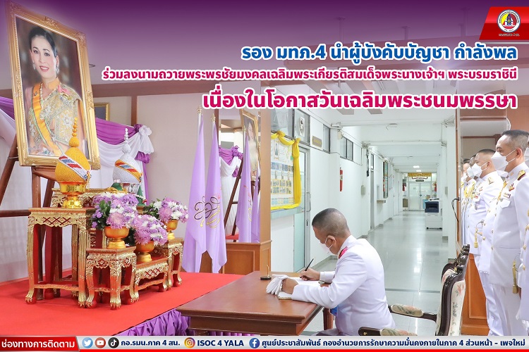 กองทัพภาคที่ 4 ขอเชิญชวนประชาชนร่วมลงนามถวายพระพร สมเด็จพระนางเจ้า ฯ พระบรมราชินี เนื่องในโอกาสวันเฉลิมพระชนมพรรษา วันที่ 3 มิถุนายน 2566 ผ่านระบบออนไลน์ ที่เว็บไซต์หน่วยราชการในพระองค์ https://wellwishes.royaloffice.th ระหว่างวันที่ 2 – 4 มิถุนายน 2566