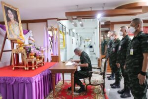 เมื่อวันที่ 3 มิถุนายน 2566 เวลา 09.00 น. ที่ อาคาร 1 กองอำนวยการรักษาความมั่นคงภายในภาค 4 ส่วนหน้า ตำบลเขาตูม อำเภอยะรัง จังหวัดปัตตานี พลตรี ปราโมทย์ พรหมอินทร์ รองแม่ทัพภาคที่ 4 / รองผู้อำนวยการรักษาความมั่นคงภายในภาค 4 ส่วนหน้า พร้อม ผู้บังคับบัญชา กำลังพล ร่วมลงนามถวายพระพรชัยมงคล เนื่องในโอกาสวันเฉลิมพระชนมพรรษา 45 พรรษาของสมเด็จพระนางเจ้าฯ พระบรมราชินี 3 มิถุนายน 2566