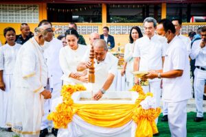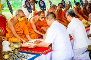 ทั้งนี้ ในเวลา 13.00 น. ได้จัดให้มีพิธีทอดผ้าป่าพระสงฆ์อนุโมทนา ญาติโยมกรวดน้ำ เพื่อรวบรวมปัจจัยในการสร้างอุโบสถ โดยกำหนดงบประมาณในการสร้างกว่า 12 ล้านบาท