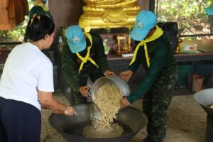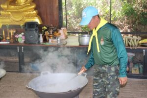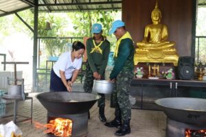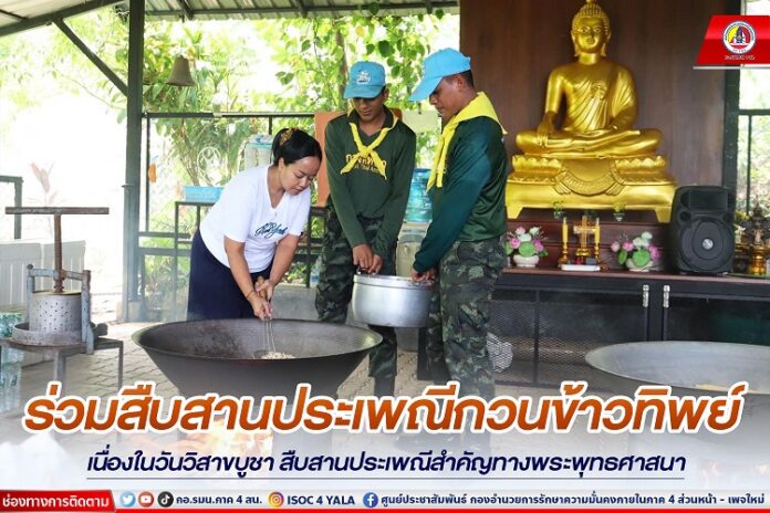 เมื่อวันที่ 1 มิถุนายน 2566 พันเอก เอกวริทธิ์ ชอบชูผล ผู้บังคับกองพันมณฑลทหารบกที่ 42 ได้จัดกำลังพล จิตอาสาพระราชทาน ช่วยเตรียมงานประเพณีกวนข้าวทิพย์ เนื่องในวันวิสาขบูชา ณ สำนักวิปัสสนาธรรมโชติ หลังศูนย์วิจัยการยาง ตำบลคอหงษ์ อำเภอหาดใหญ่ จังหวัดสงขลา ซึ่งจะจัดขึ้นในวันศุกร์ที่ 2 มิถุนายน 2566 เพื่ออนุรักษ์สืบสานวัฒนธรรมประเพณีของท้องถิ่นตามเหตุการณ์สำคัญในพุทธประวัติ และส่งเสริมให้ความรู้ความเข้าใจเกี่ยวกับประเพณีกวนข้าวทิพย์ และสร้างความตระหนัก ห่วงแหน เกิดความภาคภูมิใจในประเพณีท้องถิ่นของชุมชนที่ปฏิบัติสืบต่อกันมาอย่างช้านาน โดยมีผู้มีจิตศรัทธาเข้าร่วมบุญในครั้งนี้เป็นจำนวนมาก