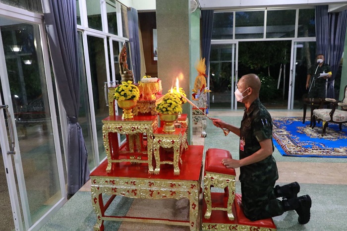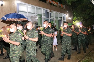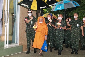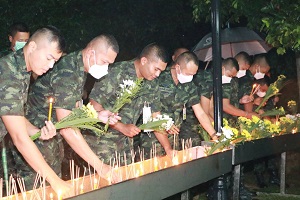 วันที่ 3 มิถุนายน 2566 เวลา 18.00 น. ณ เขาพระศรีศากยมุนีพุทธโคดม ค่ายสิรินธร ตำบลเขาตูม อำเภอยะรัง จังหวัดปัตตานี พลตรี กรกฎ ภู่โชติ รองผู้อำนวยการรักษาคงามมั่นคงภายในภาค 4 ส่วนหน้า เป็นประธานในพิธีเวียนเทียน เนื่องในวันวิสาขบูชา 3 มิถุนายน 2566 เพื่อให้กำลังพลได้ร่วมกันน้อมรำลึกถึงความสำคัญทางพระพุทธศาสนาและน้อมนำหลักธรรมที่เกี่ยวข้องเป็นแนวทางในการดำเนินชีวิต ทั้งยังเป็นการส่งเสริมเผยแผ่พระพุทธศาสนาให้คงอยู่สืบไป โดยมี คณะผู้บังคับบัญชา ตลอดจนกำลังพลของกองอำนวยการรักษาความมั่นคงภายในภาค 4 ส่วนหน้า ร่วมพิธีเป็นจำนวนมาก