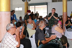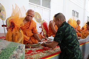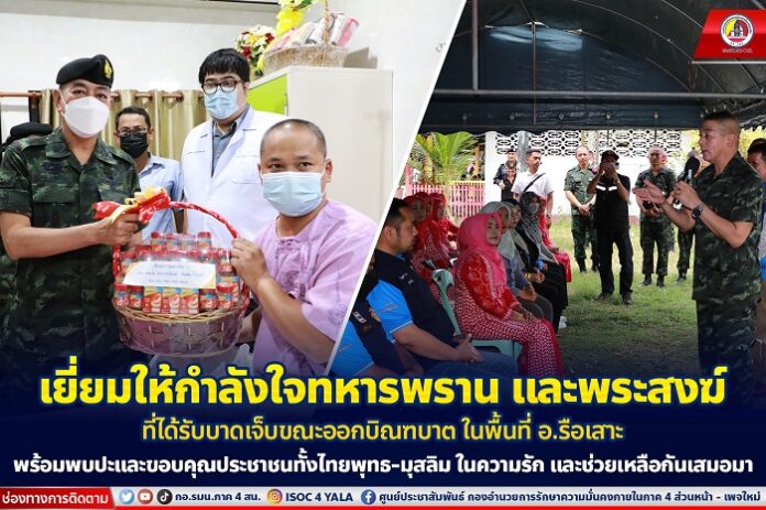 พร้อมกันนี้ แม่ทัพภาคที่ 4 /ผู้อำนวยการรักษาความมั่นคงภายในภาค 4 และคณะ ได้พบปะ และมอบถุงยังชีพเพื่อสร้างขวัญกำลังใจแก่พี่น้องชาวไทยพุทธยังวัดไพโรจน์ประชาราม ตำบลรือเสาะออก อำเภอรือเสาะ จังหวัดนราธิวาส พร้อมเยี่ยมให้กำลังใจพระสงฆ์ที่ได้รับบาดเจ็บจากเหตุการณ์ดังกล่าว โดยมีพี่น้องชาวไทยมุสลิม และผู้นำศาสนาอิสลามในพื้นที่มาร่วมให้กำลังใจพระสงฆ์ และพี่น้องชาวไทยพุทธในพื้นที่ต่อเหตุการณ์ที่เกิดขึ้น เป็นการปลอบขวัญให้กำลังใจระหว่างประชาชนกันเอง