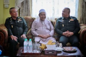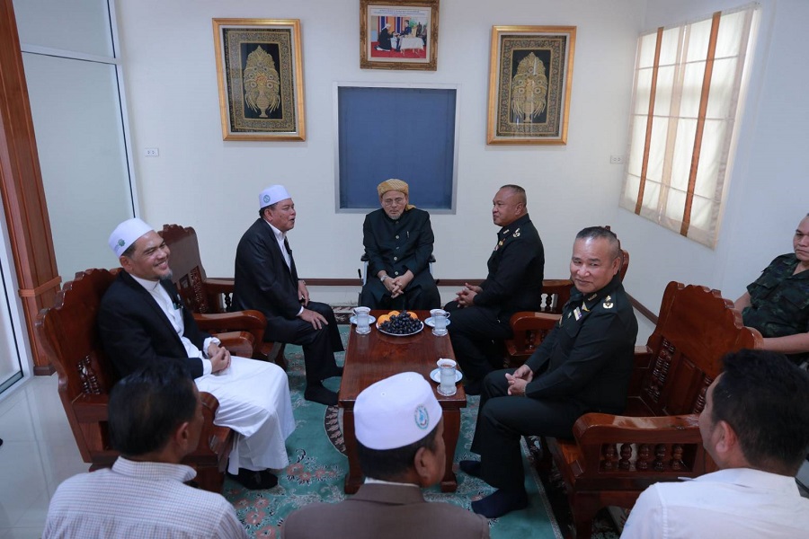 ต่อมาแม่ทัพภาคที่ 4 เดินทางไปพบปะนายซาฟีอี เจ๊ะเลาะ ประธานกรรมการอิสลามประจำจังหวัดนราธิวาส เพื่อหารือนโยบายการแก้ไขปัญหาในพื้นที่จังหวัดชายแดนภาคใต้ ร่วมพูดคุย ขอคำชี้แนะตามแนวทางของผู้นำศาสนา ในฐานะที่เป็นผู้นำทางด้านความคิด และจุดศูนย์รวมจิตใจของผู้คนในพื้นที่ เพื่อนำมาขับเคลื่อนการแก้ไขปัญหาในพื้นที่ร่วมกัน โดย นายซาฟีอี เจ๊ะเลาะ ประธานกรรมการอิสลามประจำจังหวัดนราธิวาส กล่าวว่า “ในฐานะตัวแทนชาวบ้าน ประชาชนจังหวัดนราธิวาส ขอแสดงความยินดีกับตำแหน่งแม่ทัพภาคที่ 4 ด้วยความรู้จักรู้ใจรู้มือในการทำงาน เชื่อว่าแม่ทัพภาคที่ 4 สามารถที่จะบูรณาการเดินหน้าแก้ไขปัญหาในพื้นที่ได้ต่อ ไม่ต้องนับหนึ่งใหม่ พร้อมสนับสนุนร่วมมือในการช่วยแก้ไขปัญหาตามนโยบาย ด้วยความเต็มใจ ซึ่งปัจจุบันภายในสำนักงานคณะกรรมการอิสลามประจำจังหวัดนราธิวาส มีการตั้งศูนย์รับเรื่องร้องเรียนร้องทุกข์ของชาวบ้าน ทุกเรื่องปัญหาที่เกิดผลกระทบ เป็นเครือข่ายยุติธรรมชุมชน เพื่อเป็นตัวกลางในการเชื่อมต่อ สร้างความยุติธรรมให้เกิดขึ้นในสังคม ช่วยยุติความรุนแรงในพื้นที่”