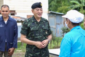 จากนั้น แม่ทัพภาคที่ 4 / ผู้อำนวยการรักษาความมั่นคงภายในภาค 4 และคณะฯ ยังได้เยี่ยมพบปะสมาชิกโครงการพระราชดำริในความรับผิดชอบของศูนย์ประสานงานโครงการอันเนื่องมาจากพระราชดำริ (ศปพร.) ก่อนมอบถุงยังชีพ เครื่องอุปโภค – บริโภค เยี่ยมชมผลผลิตและการแปรรูปผลิตภัณฑ์สินค้าจากฟาร์มตัวอย่าง ฯ ทั้งนี้ ก็เพื่อเป็นการขวัญและกำลังใจแก่สมาชิกฯ