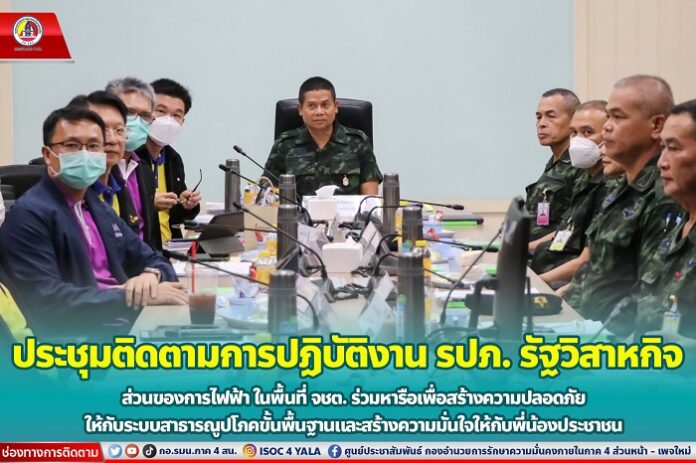 โอกาสนี้ พลตรี ไพศาล หนูสังข์ รองแม่ทัพภาคที่ 4 / รองผู้อำนวยการรักษาความมั่นคงภายในภาค 4 ส่วนหน้า กล่าวว่า กองอำนวยการรักษาความมั่นคงภายในภาค 4 ส่วนหน้า มีภารกิจในการบูรณาการด้านความมั่นคง และงานด้านพัฒนาในพื้นที่จังหวัดชายแดนภาคใต้ รักษาความปลอดภัยในชีวิตและทรัพย์สิน พัฒนายกระดับคุณภาพชีวิตของประชาชนให้ดีขึ้น และนำสันติสุขกลับสู่จังหวัดชายแดนภาคใต้ ซึ่งการจะทำให้ระบบเศรษฐกิจในพื้นที่จังหวัดชายแดนภาคใต้เจริญขึ้นได้นั้น ระบบโครงสร้างพื้นฐานต่าง ๆไม่ว่าจะเป็นไฟฟ้า ประปา เส้นทางคมนาคมจะต้องมีระบบที่เข้มแข็งมีความปลอดภัย และมั่นคงก่อนจึงจะสามารถพัฒนาระบบเศรษฐกิจในพื้นที่โดยรวมได้ และจำเป็นต้องอาศัยความร่วมมือ ร่วมใจจากทุกภาคส่วนเพื่อสร้างความปลอดภัยให้กับระบบสาธารณูปโภคขั้นพื้นฐานและสร้างความมั่นใจให้กับพี่น้องประชาชนและผู้ประกอบการในพื้นที่โดยรวม