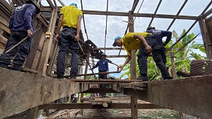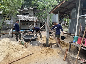 ขณะเดียวกันที่บ้านเลขที่ 53/6 บ้านทรายขาว หมู่ที่ 6 ตำบลโคกเคียน อำเภอเมือง จังหวัดนราธิวาส เจ้าหน้าที่หทารจาก กองร้อยปืนเล็กที่ 1 หน่วยเฉพาะกิจนาวิกโยธิน กองทัพเรือที่ 33 จัดชุดปฏิบัติการกิจการพลเรือน พร้อมด้วย ชุดช่างประจำกองร้อย ร่วมกับประชาชนในพื้นที่ เร่งมือกันช่วยกันต่อเติมที่พักอาศัยและสร้างห้องน้ำ เทปูน ตั้งเสาวัดระดับ ให้กับ นางสาวรุสซานาห์ บินเจะหะ ซึ่งเป็นผู้ยากไร้และได้รับการคัดเลือกในด้านการพัฒนาคุณภาพชีวิต เพื่ออำนวยความสะดวกในการดำเนินชีวิต สื่อถึงความห่วงใย สร้างความสัมพันธ์อันดีระหว่างเจ้าหน้าที่ทหารกับประชาชนในพื้นที่รอบ ๆ ค่ายจุฬาภรณ์