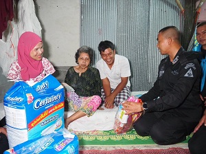 พันเอก อุทัย นิลเนตร ผบ.ฉก.ทพ.20 ผู้บังคับหน่วยเฉพาะกิจกรมทหารพรานที่ 20 จัดกำลังพล ชุดปฏิบัติการกิจการพลเรือน ร่วมกับผู้ใหญ่ใจดี ลงพื้นที่ไปยังบ้านเลขที่ 97/2 หมู่ที่ 1 ตำบลเขาตูม อำเภอยะรัง จังหวัดปัตตานี เพื่อพบปะเยี่ยมเยียนให้กำลังใจ นางแยนะ กูฑา ซึ่งมีความพิการทางการเคลื่อนไหว ร่างกาย พร้อมทั้งได้สอบถามปัญหาความเดือดร้อนในการใช้ชีวิตประจำวัน อีกทั้งได้มอบถุงยังชีพ และผ้าอ้อมสําเร็จรูป เพื่อบรรเทาความเดือดร้อนให้กับครอบครัวคนพิการ และสร้างความเท่าเทียม ลดความเหลื่อมล้ำทางสังคม รวมถึงเป็นการส่งเสริมการอยู่ร่วมกันอย่างสันติสุขในสังคมพหุวัฒนธรรม อีกทั้งยังเป็นการสร้างขวัญกำลังใจให้กับประชาชนในการดำเนินชีวิต