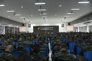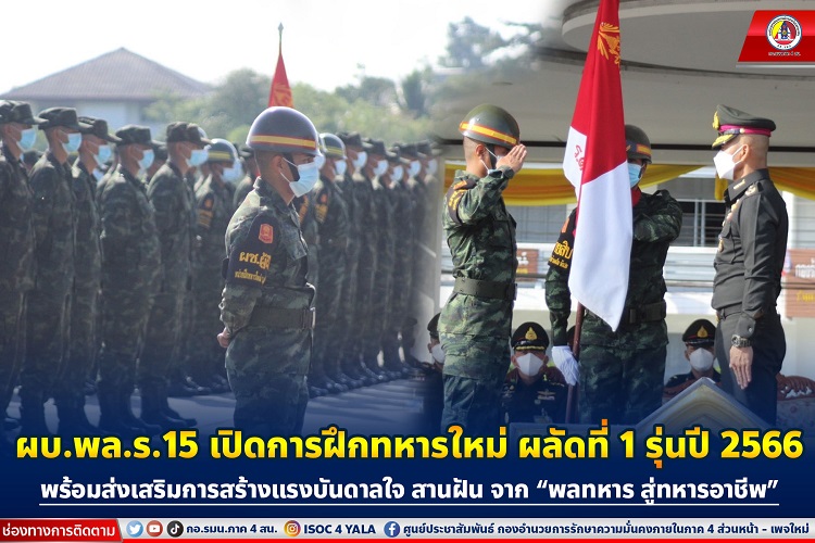 ผู้บัญชาการกองพลทหารราบที่ 15 กล่าวว่า กองพลทหารราบที่ 15 ได้จัดการฝึก และต้อนรับทหารใหม่ รุ่นปี 2566 เพื่อเริ่มการฝึกอย่างเป็นทางการ โดยมีความมุ่งหมายเพื่อ ให้ทหารใหม่ได้มีความรู้สึกภาคภูมิใจ ที่มีความเสียสละในการรับใช้ชาติ รู้สึกอบอุ่นใจในครอบครัวทหาร และคลายความวิตกกังวล ในการเข้ามาเป็นทหารใหม่ ซึ่งเป็นน้องใหม่ในรั้วกรมกอง ของกองพลทหารราบที่ 15 และเพื่อเป็นการสร้างแรงบันดาลใจ ความใฝ่ฝัน กับเส้นทางที่เลือกเดิน สู่การเป็นทหารอาชีพ ” สานฝัน จาก พลทหาร สู่พลโท ” ซึ่งได้เชิญวิทยาการพิเศษ ในการการบรรยายพิเศษถึงการสร้างแรงบันดาลใจ ในการประสบความสำเร็จในชีวิต ในการรับราชการทหาร จาก พลโท สมชาย คำสด หัวหน้าสำนักงานเลขานุการคณะกรรมการขับเคลื่อนการแก้ไขปัญหาจังหวัดชายแดนภาคใต้ ได้บอกเล่าถึงประสบการณ์ และแนวทางการเตรียมตัวสู่การเป็นทหารอาชีพ พร้อมกันนี้ ขอต้อนรับน้อง ๆ ทหารใหม่ทุกนายด้วยความยินดียิ่ง/ที่พวกเราทุกนายจะต้องมาร่วมใช้ชีวิตในการปฏิบัติหน้าที่รับใช้ประเทศชาติ อันเป็นที่รักยิ่งของพวกเราทุกนาย นับตั้งแต่นี้เป็นต้นไปตามที่น้อง ๆ ทหารใหม่ได้เข้ามารับราชการทหาร นับเป็นการเสียสละ และเป็นหน้าที่ความรับผิดชอบ ของลูกผู้ชายทุกคน ขอให้น้อง ๆ ทหารใหม่ จงมีความภาคภูมิใจในการรับใช้ชาติ ในห้วงระยะเวลานับต่อจากนี้ไป ในห้วงแรกของการเข้ามาใช้ชีวิตเป็นทหารใหม่ ซึ่งต้องปรับเปลี่ยนพฤติกรรมจากการดำเนินชีวิตแบบพลเรือน มาเป็นทหารนั้น บางคนอาจจะเกิดความท้อแท้ อึดอัด และ ขัดกับความรู้สึกที่ต้องมาอยู่ในระเบียบวินัยทหาร ขอให้น้อง ๆ ทหารใหม่ ค่อย ๆ ปรับสภาพ ใช้ความอดทน อดกลั้นให้มาก เมื่อผ่านไปสักระยะหนึ่ง น้อง ๆ ทหารใหม่ก็จะเกิดความคุ้นเคย และสามารถปฏิบัติได้ตามแบบฝึก และแบบธรรมเนียมทหารได้ สามารถอยู่ในระเบียบวินัยทหารได้เป็นอย่างดี เหมือนเช่นทหารรุ่นพี่ ๆ ที่เคยผ่านห้วงนี้ของชีวิตมาก่อน สำหรับการใช้ชีวิตอยู่ในหน่วยฝึก ขอให้น้อง ๆ ทหารใหม่คิดว่าที่นี่เปรียบเสมือนบ้านของตนเอง ซึ่งจะมีผู้ฝึกครูฝึก ผู้บังคับบัญชาตามลำดับชั้น คอยดูแลเอาใจใส่น้อง ๆ ทหารใหม่เป็นอย่างดี จึงขอให้น้อง ๆ ทหารใหม่ ได้คลายความวิตกกังวลในเรื่องต่าง ๆ ขอให้ตั้งใจรับการฝึก และปฏิบัติตามคำสั่ง คำแนะนำของผู้ฝึกโดยเคร่งครัด ขอฝากให้ผู้ฝึก ครูฝึก และเจ้าหน้าที่ที่เกี่ยวข้องทุกนาย ได้เสียสละทุ่มเทความรู้ความสามารถ พลังกาย พลังใจ และพลังสติปัญญา ในการถ่ายทอดวิชาความรู้ และชีวิตความเป็นทหาร ให้กับน้อง ๆ ทหารใ