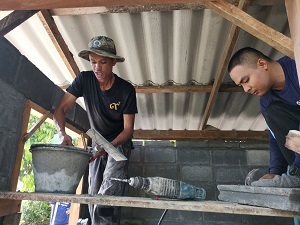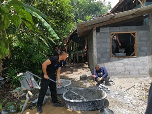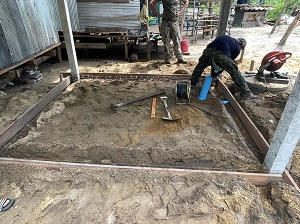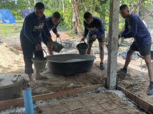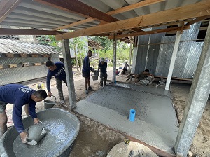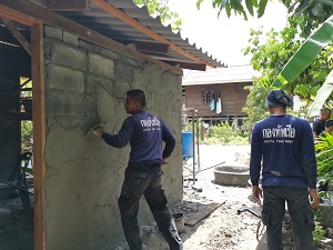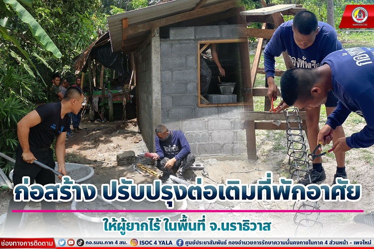 ขณะเดียวกันที่บ้านเลขที่ 53/6 บ้านทรายขาว หมู่ที่ 6 ตำบลโคกเคียน อำเภอเมือง จังหวัดนราธิวาส กองร้อยปืนเล็กที่ 1 หน่วยเฉพาะกิจนาวิกโยธิน กองทัพเรือที่ 33 จัดกำลังพลชุดปฏิบัติการกิจการพลเรือน พร้อมด้วย ชุดช่างประจำกองร้อย ร่วมกับประชาชนในพื้นที่ เร่งมือกันช่วยกันต่อเติมที่พักอาศัยและสร้างห้องน้ำให้กับ นางสาวรุสซานาห์ บินเจะหะ ซึ่งเป็นผู้พิการ และได้รับการคัดเลือกในด้านการพัฒนาคุณภาพชีวิต โดยได้ดำเนินการ วางคานพื้นเหล็กเสา เทพื้นปูน ซึ่งเจ้าหน้าที่ทหารเร่งดำเนินการให้แล้วเสร็จในเร็ววันเพื่อจะได้ส่งมอบให้ประชาชนทันตามกำหนด สื่อถึงความห่วงใย สร้างความสัมพันธ์อันดีระหว่างเจ้าหน้าที่ทหารกับประชาชนในพื้นที่รอบ ๆ ค่ายจุฬาภรณ์