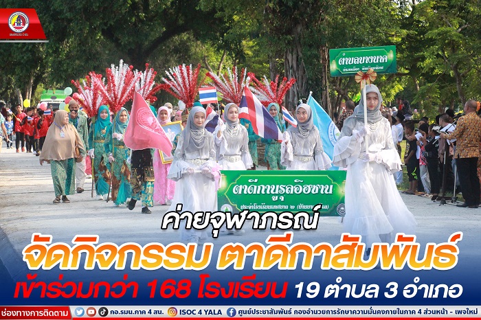 เมื่อวันที่ 10 มิถุนายน 2566 หน่วยเฉพาะกิจนาวิกโยธิน กองทัพเรือ ค่ายจุฬาภรณ์ จัดกิจกรรมตาดีกาสัมพันธ์ ประจำปีงบประมาณ 2566 ที่บริเวณสนามฟุตบอล “นำดี ตามดี “ ค่ายจุฬาภรณ์ ตำบลโคกเคียน อำเภอเมือง จังหวัดนราธิวาส โดยมี พลเรือตรี สมเกียรติ ผลประยูร เลขาธิการศูนย์อำนวยการบริหารจังหวัดชายแดนภาคใต้ (ศอ.บต.) เป็นประธานเปิดกิจกรรม เพื่อให้เด็กและเยาวชนได้มีโอกาสเล่นกีฬา พัฒนาทักษะด้านกีฬาพื้นบ้าน ส่งเสริมความคิดสร้างสรรค์ ตลอดจนกล้าแสดงออกในทางที่สร้างสรรค์ เป็นการใช้เวลาว่างให้เกิดประโยชน์ ทำให้ห่างไกลยาเสพติด อีกทั้งเป็นการสร้างความรักความสามัคคี มีน้ำใจเป็นนักกีฬา รู้แพ้ รู้ชนะ รู้อภัย ตลอดจนเป็นการส่งเสริมความสัมพันธ์อันดี มีความร่วมมือร่วมใจระหว่างประชาชนกับหน่วยงานภาครัฐและภาคเอกชนในพื้นที่รับผิดชอบ โดยมี นาวาเอก พงษ์ศักดิ์ ทองไสย ผู้บังคับการกรมทหารราบที่ 3 กองพลนาวิกโยธิน หน่วยบัญชาการนาวิกโยธิน / ผู้บังคับการหน่วยเฉพาะกิจนาวิกโยธินภาคใต้ , นายไพโรจน์ จริตงาม รองผู้ว่าราชการจังหวัดนราธิวาส , นายกิตติพงษ์ อำพันธ์ นายอำเภอยี่งอ , นายกูเซ็ง ยาวอหะซัน นายกองค์การบริหารส่วนจังหวัดนราธิวาส , นายซาฟีอี เจ๊ะเลาะ ประธานคณะกรรมการอิสลามประจำจังหวัดนราธิวาส หน่วยงานที่เกี่ยวข้อง ตลอดจนพี่น้องประชาชนเข้าร่วมกิจกรรมเป็นจำนวนมาก