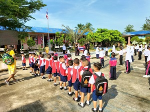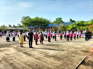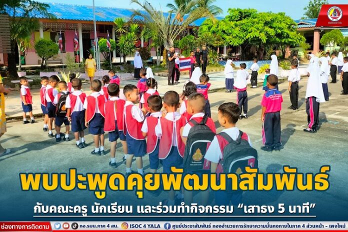 เมื่อวันที่ 13 มิถุนายน 2566 เวลา 08.00 น. ณ โรงเรียนบ้านปูตะ หมู่ที่ 3 ตำบลละหาร อำเภอยี่งอ จังหวัดนราธิวาส กองร้อยทหารพรานนาวิกโยธินที่ 8 หน่วยเฉพาะกิจนาวิกโยธินกองทัพเรือ พร้อมด้วย ชุดปฏิบัติการสาธารณสุขจังหวัด (สสจ.) เข้าพบปะพูดคุยพัฒนาสัมพันธ์กับคณะครู และนักเรียน โรงเรียนบ้านปูตะ และร่วมกิจกรรม “เสาธง 5 นาที” เพื่อสร้างความเข้าใจที่ถูกต้องกับสถานศึกษา โดยได้นำนักเรียนร้องเพลงชาติ และเชิญธงชาติขึ้นสู่ยอดเสา เพื่อปลุกจิตสำนึกให้เด็ก เยาวชน รู้คุณ ชาติ ศาสนา พระมหากษัตริย์ ปฏิบัติตนอยู่ในกรอบของกฎหมาย ยึดหลัก “ความสงบ ความสันติ และรู้ รัก สามัคคี” ตลอดจนปกป้องชาติ ศาสนา และ พระมหากษัตริย์ ให้สามสถาบันหลักของชาติเป็นศูนย์รวมจิตใจของปวงชนในชาติ พร้อมทั้งมีการฝึกระเบียบแถว ให้นักเรียนมีระเบียบวินัย