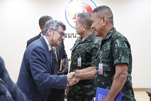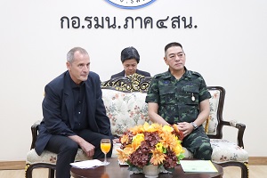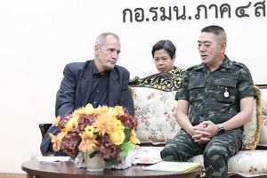 ด้าน นายฮวน เปโตร แซเรอร์ ผู้อำนวยการสำนักงานภูมิภาคคณะกรรมการกาชาดระหว่างประเทศประจำประเทศไทย (ICRC) กล่าวว่า “ขอบคุณที่ให้การต้อนร้บเราอีกครั้งที่นี่ อย่างที่ได้ทราบว่าเคยมาที่นี่ในปีที่แล้ว 1 ครั้ง อย่างแรกขอขอบคุณในการร่วมประสานงาน สถานการณ์ในภาคใต้จากการที่ได้พูดคุยและสังเกต 12 เดือนที่ผ่านมา เรามีการเห็นการพัฒนาและสถานการณ์ที่ดีขึ้นในภาคใต้ วันนี้ขอแสดงความยินดีที่สถานการณ์ในภาคใต้ดีขึ้น ที่ผ่านมาได้มีโอกาสไปร่วมงานแถลงข่าวผลการพูดคุยสันติสุขจังหวัดชายแดนภาคใต้ จึงทำให้เห็นถึงมุมมองที่สถานการณ์จะดีขึ้นเกี่ยวกับการพูดคุยน่าจะมีโอกาสได้พัฒนาเพิ่มเติมต่อไป ขอแสดงความมั่นใจว่าทาง ICRC มีการทำงานอย่างโปร่งใส หากมีเรื่องใดที่ ICRC สามารถช่วยเหลือได้ก็พร้อมจะให้ความช่วยเหลือตามที่กองอำนวยการรักษาความมั่นคงภายในภาค 4 ส่วนหน้า ต้องการ”