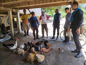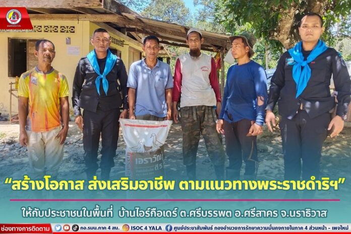 เมื่อวันที่ 16 มิถุนายน 2566 เวลา 11.30 น. ณ หมู่ที่ 4 บ้านไอร์กือเดร์ ตำบลศรีบรรพต อำเภอศรีสาคร จังหวัดนราธิวาส หน่วยเฉพาะกิจกรมทหารพรานที่ 49 เข้าพบปะเยี่ยมเยียน ติดตามการขับเคลื่อนกลุ่มเพาะเลี้ยงพันธุ์ไก่กระดูกดำพระราชทาน ส่งเสริมอาชีพให้ประชาชนในพื้นที่ โดยมี ร้อยโท สุภาพ ปรกช่วย ผู้บังคับกองร้อยทหารพรานที่ 4916 พร้อมด้วย หัวหน้าชุดปฏิบัติการกิจการพลเรือนที่ 4916 ลงพื้นที่พบปะกลุ่มเพาะเลี้ยงพันธุ์ไก่กระดูกดำพระราชทาน โดยได้สอบถามปัญหาข้อขัดข้องต่างๆ เพื่อให้โครงการได้ดำเนินการไปตามวัตถุประสงค์ และนำลูกไก่ที่ผลิตออกมาแจกจ่ายให้กับชาวบ้านในพื้นที่ ที่มีความต้องการจะเลี้ยง และต่อยอด เพื่อเป็นอาชีพเสริมให้กับครัวเรือน ตลอดจนมอบอาหารไก่สนับสนุนโครงการดังกล่าวต่อไป