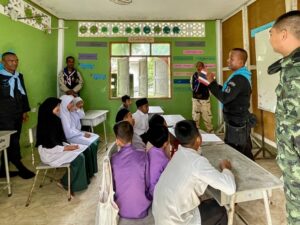 เมื่อวันที่ 18 มิถุนายน 2566 หน่วยเฉพาะกิจกรมทหารพรานที่ 44 จัดกำลังพล เข้าพบปะพัฒนาสัมพันธ์ กับบุคลากรทางการศึกษา และเยาวชน ณ สถานศึกษาประจำมัสยิด (โรงเรียนตาดีกา) ในพื้นที่ 4 อำเภอ ประกอบด้วย อ.สายบุรี, อ.กะพ้อ, อ.ทุ่งยางแดง และ อ.ไม้แก่น จ.ปัตตานี เพื่อสร้างความเข้าใจ ลดความหวาดระแวง พร้อมทั้งสร้างความเชื่อมั่นเกี่ยวกับมาตรการต่างๆ ในการกำกับดูแลพื้นที่รับผิดชอบของหน่วย เพื่อความปลอดภัยของบุคลากรทางการศึกษาฯ และพี่น้องประชาชน รวมทั้งได้แจ้งข้อมูลข่าวสารต่างๆ เกี่ยวกับสถานการณ์ในปัจจุบันให้กับบุคลากรทางการศึกษาฯ ได้รับทราบ