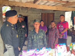 เมื่อวันที่ 19 มิถุนายน 2566 เวลา 14.30 น. พันโท ธนรัฐ ลำจวน ผู้บังคับกองพันเสนารักษ์ กรมสนับสนุน กองพลทหารราบที่ 15 / ผู้อำนวยการฝึก หน่วยฝึกทหารใหม่กองพันเสนารักษ์ฯ ค่ายลพบุรีราเมศวร์ จังหวัดสงขลา เดินทางเยี่ยมเยียนบ้านทหารใหม่ที่มีฐานะยากลำบาก เพื่อดูแลความเป็นอยู่ของครอบครัว และได้พาทหารใหม่ พลทหาร อรรถชัย แก้วสุข ผลัดที่ 1 ประจำปี 2566 สังกัด กองพันเสนารักษ์ฯ ร่วมเดินทางเยี่ยมครอบครัว ณ บ้านคูนายสังข์ ตำบลแค อำเภอจะนะ จังหวัดสงขลา เป็นการสร้างขวัญกำลังใจให้กับน้องทหารใหม่และครอบครัว พร้อมหาแนวทางการช่วยเหลือ นอกจากนี้ยังได้มอบสิ่งของดำรงชีพ และจัดชุดแพทย์เคลื่อนที่ให้การแนะนำดูแลด้านสุขภาพเบื้องต้นให้กับครอบครัวทหารใหม่ เพื่อสร้างขวัญกำลังใจ แทนความห่วงใยจากกองทัพบกให้แก่ครอบครัวทหารใหม่ ช่วยเหลือครอบครัวทหารใหม่ให้มีความเป็นอยู่ที่ดีขึ้น ภายหลังจากที่บุตรเข้ารับราชการเป็นทหารกองประจำการในกองทัพบก ทำหน้าที่ชายไทยด้วยความเต็มใจและภาคภูมิใจ