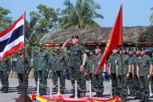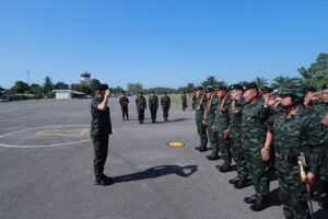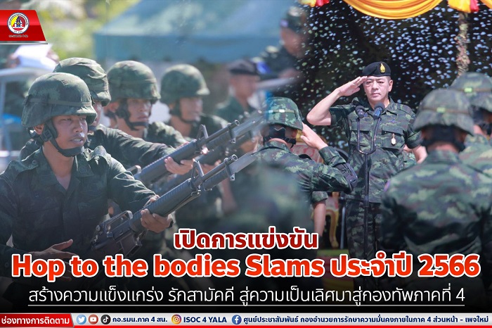 วันนี้ (20 มิถุนายน 2566) เวลา 10.00 น. พลโทศานติ ศกุนตนาค แม่ทัพภาคที่ 4 เดินทางเป็นประธานพิธีเปิดการแข่งขันการฝึกทางทหารประกอบดนตรี “ราชวัลลภเริงระบำ” (Hop to the bodies Slams) ประจำปี 2566 พร้อมเยี่ยมชม ให้กำลังใจและให้โอวาทแก่ผู้เข้าแข่งขัน ที่มีกำลังพลในหน่วยขึ้นตรงของกองทัพภาคที่ 4 เข้ารับการฝึกเพื่อเตรียมการแข่งขัน ตรวจสอบและประเมินผลในระดับกองทัพบกต่อไป ณ สนามบินค่ายวชิราวุธ ภายในชุดบริการสนามบินและหอบังคับการบินที่ 5 ค่ายวชิราวุธ อำเภอเมือง จังหวัดนครศรีธรรมราช