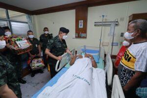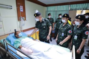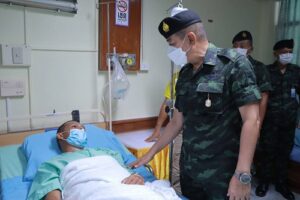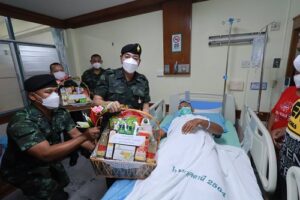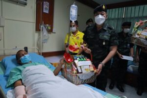 โดยแม่ทัพภาคที่ 4 ได้สอบถามอาการ และเหตุการณ์ที่เกิดขึ้น ทั้งนำความห่วงใยจาก พลเอก ณรงค์พันธ์ จิตต์แก้วแท้ ผู้บัญชาการทหารบก มายังกำลังพลและครอบครัว มอบกระเช้าเยี่ยม และเงินช่วยเหลือเยียวยาเบื้องต้น ตลอดจนกำชับหน่วยต้นสังกัด และส่วนที่เกี่ยวข้องดูแลเรื่องสิทธิ สวัสดิการอย่างดีที่สุด กล่าวขอบคุณกำลังพลที่ปฏิบัติงานอย่างเต็มความสามารถ มีสติ สามารถควบคุมสถานการณ์ และป้องกันไม่ให้คนร้ายเข้ามาโจมตีซ้ำ จนเกิดความสูญเสียเพิ่ม