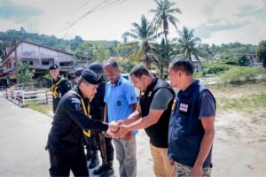เมื่อวันที่ 21 มิถุนายน 2566 เวลา 10.00 น. พันเอกณัฐภูมิ ฉัตรภูมิ รองผู้บังคับหน่วยเฉพาะกิจกรมทหารพรานที่ 45 ลงพื้นที่ตรวจเยี่ยมให้กำลังใจ ชุดปฏิบัติการพิทักษ์พื้นที่ ร้อยทหารพราน และอาสาสมัครประจำพื้นที่ ที่ปฏิบัติหน้าที่รักษาความปลอดภัยเส้นทางรถไฟ ในพื้นที่อำเภอระแงะ จังหวัดนราธิวาส โดยได้เน้นย้ำการปฏิบัติในการรักษาความปลอดภัยพื้นที่ให้มีความปลอดภัย สร้างความเชื่อมั่นและความปลอดภัยให้แก่พี่น้องประชาชนในพื้นที่ ตลอดจนได้สอบถามปัญหาข้อขัดข้องในการปฏิบัติงาน