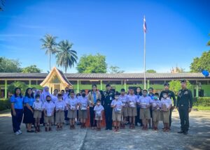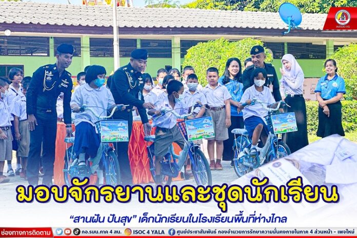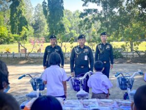 เมื่อ 22 มิถุนายน 2566 เวลา 09.00 น. พันเอก ศุภสิทธิ์ สุขธัมรงค์ เสนาธิการกรมพัฒนาที่ 4 ลงพื้นที่โรงเรียนวัดเลียบ ตำบลคลองหลา อำเภอคลองหอยโข่ง จังหวัดสงขลา เพื่อมอบรถจักรยานให้กับนักเรียนในการนำไปใช้เดินทางไปโรงเรียน เพื่อความปลอดภัย ภายใต้โครงการ “จักรยาน สานฝัน ปันสุข” ตามนโยบายของกองทัพบก และมอบเสื้อผ้าชุดนักเรียนให้กับนักเรียน ภายใต้โครงการ “ถุงยังชีพเพื่อการศึกษา” เพื่อเป็นขวัญกำลังใจ และช่วยลดค่าใช้จ่ายในครัวเรือนให้กับเด็กนักเรียน