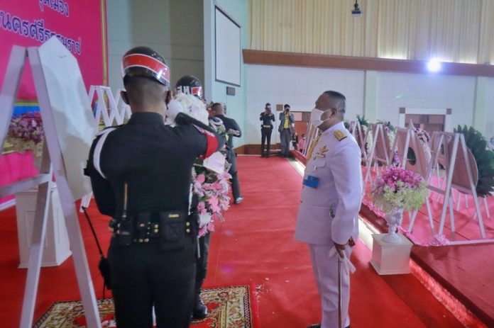วันนี้ (23 ตุลาคม 2563) เวลา 08.50 น. พลโท เกรียงไกร ศรีรักษ์ แม่ทัพภาคที่ 4 พร้อมด้วย คุณคนึงนิตย์ ศรีรักษ์ ประธานสมาคมแม่บ้านทหารบกสาขากองทัพภาคที่ 4 เข้าร่วมกิจกรรมน้อมรำลึก เนื่องในวันคล้ายวันสวรรคต พระบาทสมเด็จพระปรมินทรมหาจุฬาลงกรณ์ พระจุลจอมเกล้าเจ้าอยู่หัว รัชกาลที่ 5 โดยมี นายไกรศร วิศิษฎ์วงศ์ ผู้ว่าราชการจังหวัดนครศรีธรรมราช เป็นประธาน ณ หอประชุมเมืองนครศรีธรรมราช อำเภอเมืองจังหวัดนครศรีธรรมราช ในพิธีประกอบไปด้วยการวางพวงมาลา และถวายบังคมเบื้องหน้าพระบรมฉายาลักษณ์ จากส่วนราชการ ทั้งภาครัฐ เอกชน และประชาชน เพื่อเทิดพระเกียรติ น้อมรำลึกในพระมหากรุณาธิคุณของพระบาทสมเด็จพระจุลจอมเกล้าเจ้าอยู่หัว รัชกาลที่ 5 ที่ทรงมีต่อพสกนิกรชาวไทย อย่างพร้อมเพรียง