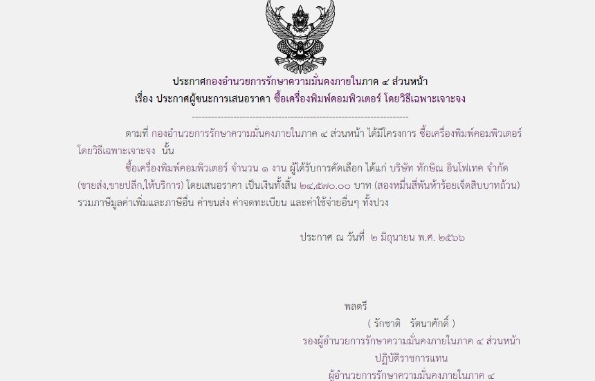 จัดซื้อ จัดจ้างประกาศผู้ชนะการเสนอราคา ประกาศผู้ชนะการเสนอราคา ซื้อเครื่องพิมพ์คอมพิวเตอร์ โดยวิธีเฉพาะเจาะจง June 22, 2023 494 Share Facebook Twitter Google+ Telegram LINE