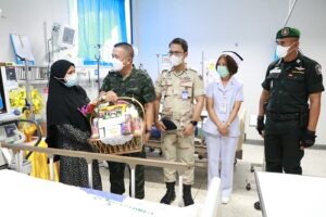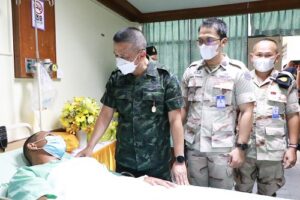 จากนั้น พลตรี ปราโมทย์ พรหมอินทร์ รองแม่ทัพภาคที่ 4 / รองผู้อำนวยการรักษาความมั่นคงภายในภาค 4 ส่วนหน้า พร้อมคณะ เดินทางไปยังโรงพยาบาลปัตตานี เพื่อเยี่ยมและให้กำลังใจผู้บาดเจ็บจากเหตุการณ์ดังกล่าว ประกอบด้วย อส.อ.สุพียัน เด็งลา, อส.ต. อับดุล ดะแม็ง, อส.ต. รอซารี กูโน, ส.อ.เกรียงศักดิ์ ศรีสุกใส เบื้องต้นอาการปลอดภัย ในโอกาสนี้ รองแม่ทัพภาคที่ 4 / รองผู้อำนวยการรักษาความมั่นคงภายในภาค 4 ส่วนหน้า ได้พูดคุยให้กำลังใจกับผู้บาดเจ็บรวมทั้งครอบครัว พร้อมชื่นชมในความกล้าหาญและเสียสละ ขอให้มุ่งมั่นและตั้งใจในการปฎิบัติหน้าที่เพื่อดูแลพี่น้องประชาชนและพื้นที่ของตนเองให้มีความปลอดภัย