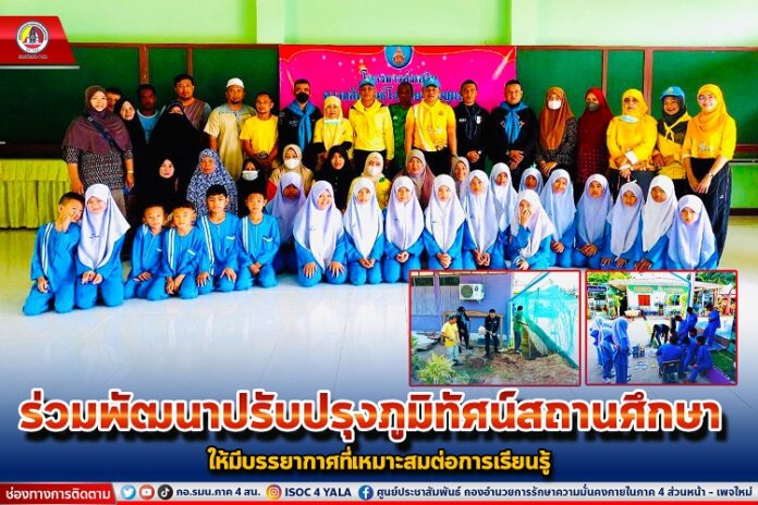 เมื่อวันที่ 23 มิถุนายน 2566 เวลา 09.30 น. ชุดปฏิบัติการกิจการพลเรือน กองร้อยทหารพรานที่ 4111 หน่วยเฉพาะกิจกรมทหารพรานที่ 41 พร้อมด้วยกำลังพลจิตอาสา ร่วมกับคณะครูนักเรียน และประชาชนจิตอาสาในพื้นที่ตำบลบาโงย ร่วมจัดกิจกรรมอาสาพระราชทาน “เราทำความดีด้วยหัวใจ” พัฒนา ปรับภูมิทัศน์ บริเวณโดยรอบสถานศึกษา ณ โรงเรียนบ้านบาโงย อำเภอรามัน จังหวัดยะลา