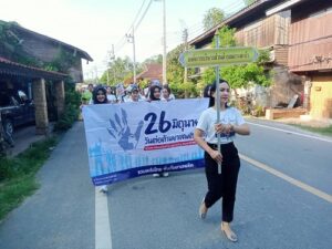 โดยเดินรณรงค์ตามเส้นทางภายในพื้นที่ชุมชนองค์การบริหารส่วนตำบลเกาะสะบ้า อำเภอเทพา จังหวัดสงขลา เพื่อสร้างความตระหนักถึงโทษพิษภัยของสิ่งเสพติด และป้องกันไม่ให้ไปยุ่งเกี่ยวกับยาเสพติด ตลอดจนยังเป็นการรวมพลังเชิงสัญลักษณ์ในการรณรงค์ต่อต้าน เนื่องในวันยาเสพติดโลกอีกด้วย