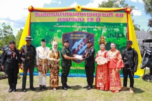 วันนี้ (25 มิถุนายน 2566 )เวลา 10.00 น. ณ ลานหน้ากองบังคับการ หน่วยเฉพาะกิจกรมทหารพรานที่ 48 ค่ายกรมหลวงนราธิวาสราชนครินทร์ ตำบลมะรือโบออก อำเภอเจาะไอร้อง จังหวัดนราธิวาส พลตรี ไพศาล หนูสังข์ รองแม่ทัพภาคที่ 4 / รองผู้อำนวยการรักษาความมั่นคงภายในภาค 4 ส่วนหน้า เป็นประธานในพิธีทำบุญเนื่องในวันสถาปนากรมทหารพรานที่ 48 ครบรอบปีที่ 12 วันที่ 25 มิถุนายน 2566 จัดขึ้น เพื่ออุทิศบุญกุศล และระลึกถึงคุณงามความดีของกำลังพลที่ได้เสียสละชีวิตในการปกป้องอธิปไตยของชาติ ตลอดจน เพื่อความเป็นสิริมงคลแก่หน่วย และเป็นขวัญกำลังใจแก่กำลังพล โดยมี พันเอก ภาคิน เกื้อกูล ผู้บังคับหน่วยเฉพาะกิจกรมทหารพรานที่ 48, อดีตผู้บังคับบัญชา, ประธานสมาคมแม่บ้านทหารบก สาขากรมทหารพรานที่ 48 ,ผู้บังคับหน่วยทั้งทหาร ตำรวจ ผู้นำในพื้นที่ และกำลังพลเข้าร่วมในพิธีฯ