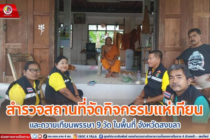หน่วยเฉพาะกิจตำรวจตระเวนชายแดนที่ 43 มอบหมายให้ ร้อยตำรวจเอกหญิง สุรัตน์ ฤทธิรัตน์ หัวหน้าฝ่ายกิจการพลเรือน หน่วยเฉพาะกิจตำรวจตระเวนชายแดนที่ 43 พร้อมด้วยกลุ่มภาคีเครือข่ายอาสาแก้ปัญหาและพัฒนาพื้นที่ รวมถึงพุทธศาสนิกชนในพื้นที่ ตลอดจนหน่วยงานราชการในพื้นที่ ร่วมสำรวจสถานที่และประสานการปฏิบัติในการจัดกิจกรรมแห่เทียนและถวายเทียนพรรษา 9 วัด ในพื้นที่ 4 อำเภอของจังหวัดสงขลา ซึ่งกิจกรรมดังกล่าวจะจัดขึ้นในวันที่ 29 กรกฎาคม 2566 ณ บริเวณ วัด, สำนักสงฆ์, และที่พักสงฆ์ ในพื้นที่ 4 อำเภอของจังหวัดสงขลา