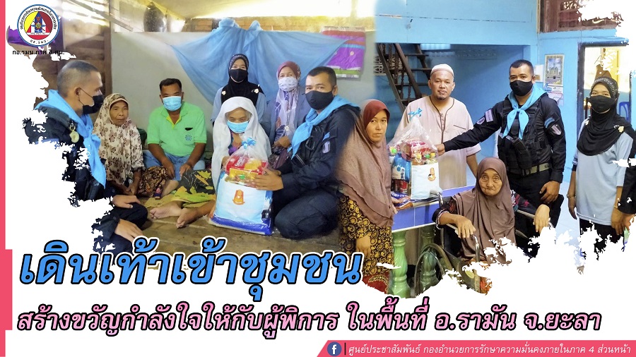 หน่วยเฉพาะกิจกรมทหารพรานที่ 41 ร่วมกับ ผู้นำชุมชน อาสาสมัครสาธารณสุขประจำหมู่บ้าน (อสม.) และทุกภาคส่วนในพื้นที่ เยี่ยมเยียนประชาชนกลุ่มเปราะบาง (ผู้พิการด้านการเคลื่อนไหว) ในพื้นที่ อำเภอรามัน จังหวัดยะลา เพื่อให้การช่วยเหลือและสร้างขวัญกำลังใจในการดำเนินชีวิตของประชาชนกลุ่มเปราะบางอย่างต่อเนื่อง ตามวัตถุประสงค์ของ พลตรี อุทิศ อนันตนานนท์ ผู้บังคับหน่วยเฉพาะกิจยะลา รวมทั้งได้มอบถุงยังชีพ มอบเครื่องอุปโภคและเครื่องใช้ที่จำเป็นสำหรับผู้พิการด้านการเคลื่อนไหว พร้อมจัดชุดปฏิบัติการกิจการพลเรือนหมวดทหารพรานหญิง จัดกระเป๋ายาเคลื่อนที่ร่วมกับอาสาสมัครสาธารณสุขประจำหมู่บ้าน ให้บริการในการตรวจสุขภาพและรักษาพยาบาลเบื้องต้น