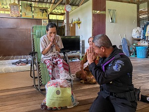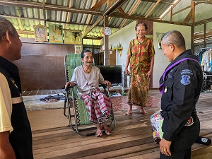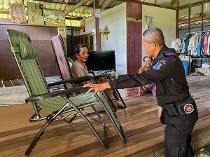 ทั้งนี้ ผู้บังคับหน่วยเฉพาะกิจกรมทหารพรานที่ 44 ได้มอบเก้าอี้ผ้าใบ ตามที่ผู้สูงอายุมีความต้องการในการใช้ประโยชน์ รวมทั้งมอบถุงยังชีพ ให้กับพี่น้องประชาชนกลุ่มเป้าหมายดังกล่าว เพื่อเป็นการช่วยเหลือ และบรรเทาความเดือดร้อนในการดำเนินชีวิตช่วงสถานการณ์ในยุคปัจจุบัน
