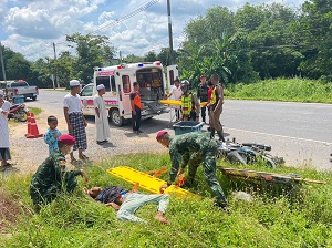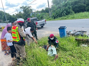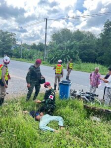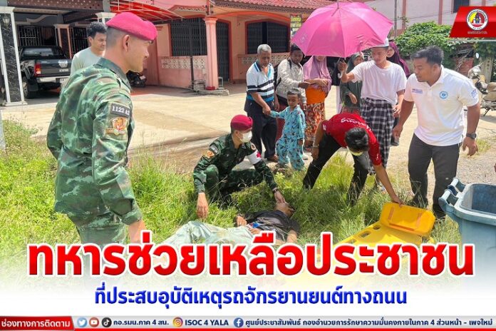 เมื่อวันที่ 4 กรกฎาคม 2566 เวลา 11.00 น. ชุดสันติสุขที่ 101 ร่วมกับ เจ้าหน้าที่ตำรวจจราจร สถานีตำรวจภูธรอำเภอยะรัง ดำเนินการให้บริการทางการแพทย์ (ฉุกเฉิน) ช่วยเหลือประชาชนที่ประสบอุบัติเหตุทางรถจักรยานยนต์ ซึ่งมีผู้บาดเจ็บ จำนวน 1 คน ณ ถนนหมายเลข 410 บ้านบาซาเอ หมู่ที่ 3 ตำบลปิตูมุดี อำเภอยะรัง จังหวัดปัตตานี พร้อมทั้งได้ประสานหน่วยกู้ชีพกู้ภัยในพื้นที่ เข้าให้การช่วยเหลือ และนำผู้บาดเจ็บเข้ารับการรักษาต่อไปยังโรงพยาบาลยะรัง อำเภอยะรัง จังหวัดปัตตานี อย่างทันท่วงที