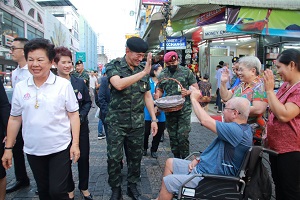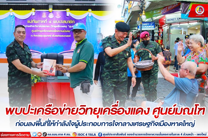 นอกจากจะให้กำลังใจผู้ประกอบการร้านค้าใจกลางเมืองเศรษฐกิจอย่างตลาดกิมหยงแล้วแม่ทัพภาคที่ 4 ก็ยังให้กำลังใจเครือข่ายวิทยุเครื่องแดงที่ต่างเป็นสมาชิกเครือข่ายเฝ้าระวังภัยและเหตุการณ์ต่างๆเพื่อให้แหล่งท่องเที่ยวมีความปลอดภัยเป็นหูเป็นตาแจ้งข่าวสารให้เจ้าหน้าที่รัฐ