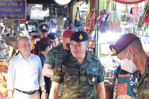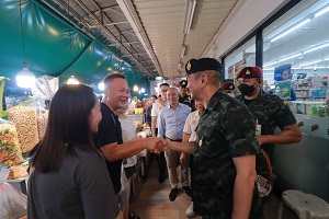 ต่อมาแม่ทัพภาคที่ 4 ถือโอกาสพบปะเครือข่ายวิทยุเครื่องแดงในเขตเมืองเศรษฐกิจศูนย์การค้าตลาดกิมหยง เดินให้กำลังใจผู้ประกอบการร้านค้าต่าง ๆ ซึ่งประกอบไปด้วย ร้านขายผลไม้ของฝาก ขนม เสื้อผ้า ร้านนวดแผนไทย ร้านอาหารพื้นเมืองต่าง ๆ เมื่อถามถึงผลประกอบการต่างก็พูดเป็นเสียงเดียวกันว่ากลับมาคึกคักอีกครั้งเนื่องจากสถานการณ์การแพร่ระบาดของเชื้อไวรัสโควิด 19 ได้เบาบางลง นอกจากนั้นแล้วนักท่องเที่ยวฝั่งมาเลเซีย จีน และสิงคโปร์ก็เข้ามาเที่ยวกันอย่างต่อเนื่องทำให้เศรษฐกิจการเมืองหาดใหญ่มีสีสันขึ้น