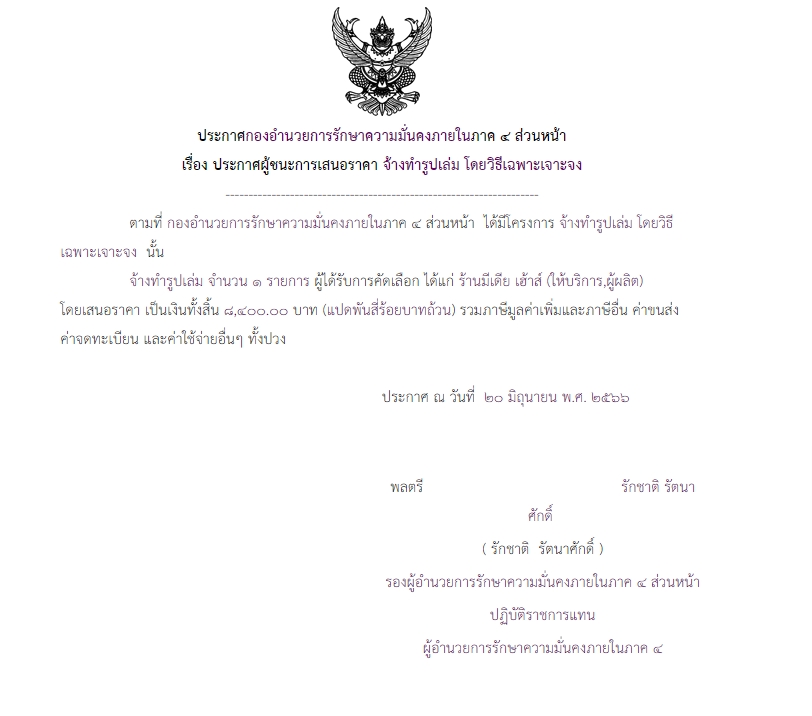 ประกาศผู้ชนะการเสนอราคา จ้างทำรูปเล่ม โดยวิธีเฉพาะเจาะจง