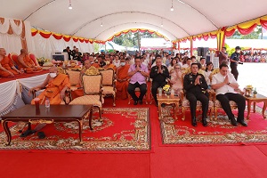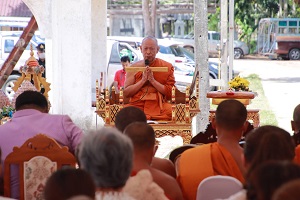 โอกาสนี้ แม่ทัพภาคที่ 4 และผู้ร่วมพิธี ได้ร่วมกันประกอบพิธียกช่อฟ้าขึ้นสู่ยอดศาลาการเปรียญ ซึ่งพิธีการดังกล่าว เป็นพิธีสำคัญเนื่องจากเป็นการยกส่วนบนสุดของอาคาร ศาสนสถาน หากใครได้ร่วมบุญยกช่อฟ้าแล้ว นับว่าเป็นมหากุศลอย่างยิ่ง จะทำให้ชะตาชีวิตสูงส่ง มีจิตใจใฝ่ดี ใฝ่ความก้าวหน้า มีเกียรติ มีความสง่างาม และเป็นการสืบทอดพระพุทธศาสนาให้ดำรงอยู่สืบไป