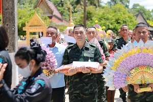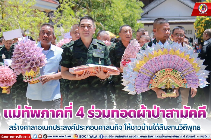 โอกาสนี้ แม่ทัพภาคที่ 4 / ผู้อำนวยการรักษาความมั่นคงภายในภาค 4 กล่าวพบปะกับผู้เข้าร่วมงาน กล่าวขอบคุณทางวัดสุวรรณากร เพราะที่ผ่านมากองอำนวยการรักษาความมั่นคงภายในภาค 4 ส่วนหน้า ได้ใช้สถานที่ภายในวัดนี้เพื่อประกอบพิธีทางศาสนามาโดยตลอด จึงอยากช่วยบูรณะศาสนสถาน และอยากให้ทุกคนได้ร่วมสนับสนุนช่วยกันสมทบทุน ซึ่งกองอำนวยการรักษาความมั่นคงภายในภาค 4 ส่วนหน้า ก็พร้อมส่งเสริม สนับสนุนพระพุทธศาสนา ประเพณี วัฒนธรรมที่ดีงามของพี่น้องในพื้นที่จังหวัดชายแดนภาคใต้ต่อไป
