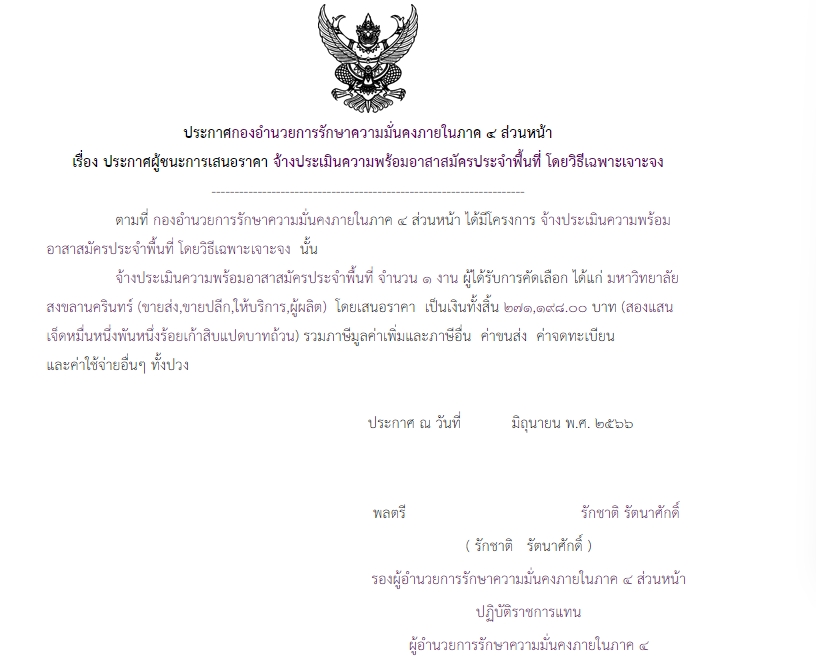 จัดซื้อ จัดจ้างประกาศผู้ชนะการเสนอราคา ประกาศผู้ชนะการเสนอราคา จ้างประเมินความพร้อมอาสาสมัครประจำพื้นที่ โดยวิธีเฉพาะเจาะจง July 12, 2023 373 Share Facebook Twitter Google+ Telegram LINE