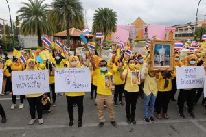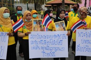 วันนี้ (25 ต.ค. 63) เวลา 14.00 น. ณ ลานวัฒนธรรม อำเภอเมือง จังหวัดปัตตานี เครือข่ายมวลชน ประกอบด้วย องค์กรภาคประชาชนเพื่อสันติและเศรษฐกิจพอเพียง (เสื้อเขียว), กลุ่มผู้ได้รับผลกระทบจากเหตุการณ์ความไม่สงบในพื้นที่, เครือข่ายญาลันนันบารู, และโฆษกชาวบ้านกว่า 300 คน พร้อมใจกันสวมเสื้อเหลือง ร่วมกิจกรรม “รวมพล มวลชน คนรักสถาบัน” โบกสะบัดธงชาติไทย และร่วมกันกล่าวปฏิญาณตนแสดงความจงรักภักดีต่อสถาบันหลักของประเทศ พร้อมกันนี้ยังร่วมกันร้องเพลงสรรเสริญพระบารมี เพื่อเป็นการแสดงพลังปกป้องสถาบันพระมหากษัตริย์ซึ่งเป็นสิ่งยึดเหนี่ยวจิตใจของประชาชนคนไทยทั้งชาติ