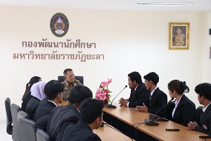 ในช่วงบ่าย พล.อ.ดาว์พงษ์ รัตนสุวรรณ องคมนตรี ได้ประชุมติดตามการดำเนินงานโครงการพัฒนา Soft Skills ด้วยกระบวนการวิศวกรสังคม การนำผลงานของนักศึกษา กลุ่มที่ 1 “การผจญภัยบ้านบางเขา” และ“การผจญภัยบ้านกายอง” ในกิจกรรมสร้างการมีส่วนร่วมกับชุมชน นำวัตถุดิบที่มีในชุมชน เข้าสู่กระบวนการผลิตเป็นสินค้าและผลิตภัณฑ์ วางจำหน่าย พร้อมทั้งการสื่อสารผ่านทางสื่อโซเชียล สร้างรายได้ให้กับชุมชน จากนั้นได้เดินทางไปยังอาคารกิจกรรมนักศึกษามหาวิทยาลัยราชภัฏยะลา พบปะผู้นำนักศึกษามหาวิทยาลัยราชภัฏยะลา และได้เยี่ยมชมการจัดนิทรรศการโครงการพัฒนาท้องถิ่น บริเวณลานชั้น 1 หอประชุมเฉลิมพระเกียรติ 80 พรรษา 5 ธันวาคม 2550 มหาวิทยาลัยราชภัฏยะลา โดยมีการจัดแสดงนิทรรศการ ตามพระบรมราโชบาย 28 ด้าน มีโครงการเด่นยุทธศาสตร์ ของมหาวิทยาลัยราชภัฏเพื่อการพัฒนาท้องถิ่น มหาวิทยาลัยราชภัฏยะลา จำนวน 4 โครงการ ประกอบด้วย ด้านเศรษฐกิจ โครงการพัฒนายกระดับมาตราฐานผลิตภัณฑ์ชุมชน (OTOP) หมู่บ้านชาวประมงพื้นบ้าน ต.บางตาวา อ.หนองจิก จ.ปัตตานี กลุ่มเป้าหมาย วิสาหกิจชุมชนปลาแห้งท่ายาลอ กลุ่มแม่บ้านศรีบารู และ วิสหากิจชุมชนแปรรูปอาหารทะเลปากบางตาวา ในการผลิตปลากุเลาเค็ม โครงการการส่งเสริมการเลี้ยงผึ้งชันโรงเพื่อการสร้างรายได้ที่ยั่งยืน ที่ ต.อาซ่อง อ.รามัน จ.ยะลา ด้านสังคม โครงการยกระดับรายได้ให้คนในชุมชนฐานรากเพื่อพัฒนาคุณภาพชีวิตโดยใช้นวัตกรรมเกษตรแบบผสมผสาน (JAPO Model) พื้นที่เป้าหมายในพื้นที่ 3 จังหวัดชายแดนภาคใต้ ยะลา ปัตตานี นราธิวาส เพื่อเป็นศูนย์เรียนรู้ต้นแบบประจำตำบล ลดรายจ่ายและเพิ่มรายได้ในครัวเรือน ยกระดับคุณภาพชีวิตที่ดีขึ้น ด้านสังคม โครงการผลักดันป่าฮาลา-บาลา เป็นมรดกอาเซียนข้ามแดนสู่มรดกโลก พื้นที่เป้าหมาย เขตรักษาพันธุ์สัตว์ป่าฮาลา-บาลา อำเภอเบตง จังหวัดยะลา อำเภอแว้ง จังหวัดนราธิวาส และอำเภอสุคิริน จังหวัดนราธิวาส ด้านการศึกษา โครงการคลังข้อสอบออนไลน์เพื่อยกระดับคุณภาพการศึกษาในพื้นที่สามจังหวัดชายแดนภาคใต้ โดยการนำระบบสารสนเทศ หนุนเสริมในการจัดโครงการต่าง ๆ ทางการศึกษา เช่น โครงการยกระดับการเรียนรู้โรงเรียนขนาดเล็ก โดยการทำระบบพัฒนาระบบคลังข้อสอบออนไลน์เพื่อพัฒนาคุณภาพการศึกษาโรงเรียนในพื้นที่จังหวัดชายแดนภาคใต้ ส่งผลให้คะแนนการสอบโอเน็ต ในปี 2565 มีคะแนนเฉลี่ยที่ดีขึ้น ระบบคลังข้อสอบวัดความรู้ภาษาอังกฤษ TOEIC หนุนเสริมกิจกรรม PRE TEST และ POST TEST ในการติวความรู้ภาษาอังกฤษให้กับนักศึกษา ส่งผลให้มีจำนวนนักศึกษาที่สอบผ่านในระ