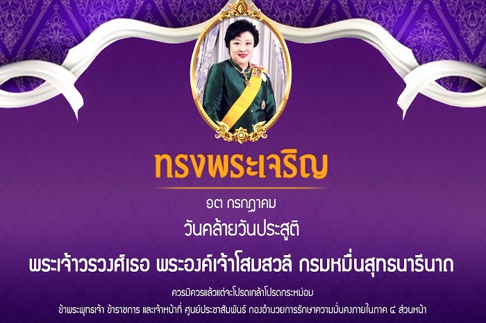 ประชาสัมพันธ์ข่าวประชาสัมพันธ์ 13 กรกฎาคม วันคล้ายวันประสูติ พระเจ้าวรวงศ์เธอ พระองค์เจ้าโสมสวลี กรมหมื่นสุทธนารีนาถ July 13, 2023 413 Share Facebook Twitter Google+ Telegram LINE ทรงพระเจริญ ควรมิควรแล้วแต่จะโปรดเกล้าโปรดกระหม่อม ข้าพระพุทธเจ้า ข้าราชการและเจ้าหน้าที่ ศูนย์ประชาสัมพันธ์ กองอำนวยการรักษาความมั่นคงภายในภาค 4 ส่วนหน้า ทรงพระเจริญ ศูนย์ประชาสัมพันธ์กองอำนวยการรักษาความมั่นคงภายในภาค4ส่วนหน้า