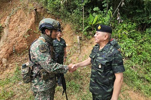 ซึ่งในโอกาสนี้แม่ทัพภาคที่ 4 ได้เยี่ยมให้กำลังใจและพูดคุยทักทายกับกองกำลังทหารประเทศเพื่อนบ้าน พร้อมมอบสิ่งของอุปโภคบริโภคเป็นขวัญและกำลังใจในการปฏิบัติหน้าที่ เพื่อการประสานสอดคล้องเป็นความร่วมมือระหว่างประเทศต่อไป