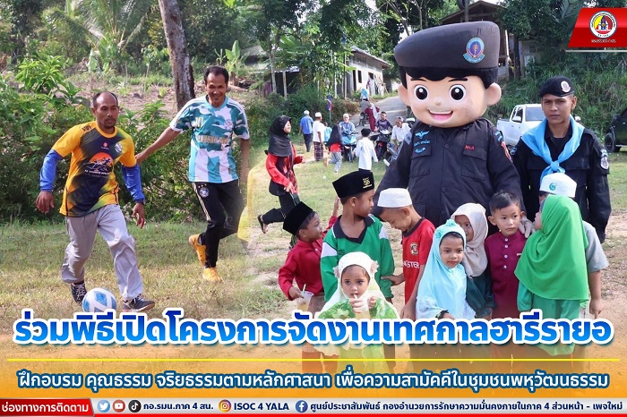 หน่วยเฉพาะกิจกรมทหารพรานที่ 49 จัดกำลังพล ร่วมกับ ผู้ใหญ่บ้าน, ส่วนราชการ และประชาชนในพื้นที่ ร่วมในพิธีเปิดโครงการจัดงานเทศกาลฮารีรายอ ฝึกอบรม คุณธรรม จริยธรรมตามหลักศาสนา ณ สนามกีฬามัสยิดอัลคอยบัร บ้านไอร์กากอ หมู่ที่ 6 ตำบลซากอ อำเภอศรีสาคร จังหวัดนราธิวาส เพื่อความสามัคคีในชุมชนพหุวัฒนธรรมระหว่างไทยพุทธ – มุสลิม และสืบสานภูมิปัญญาท้องถิ่นในอดีตโดยผ่านกระบวนการละเล่นกีฬาพื้นบ้าน เพื่อเป็นการสร้างความสัมพันธ์ที่ดีกับหน่วยงานในพื้นที่ โดยมี นายสาและ ตาลี นายกองค์การบริหารส่วนตำบลซากอ เป็นประธานในพิธี
