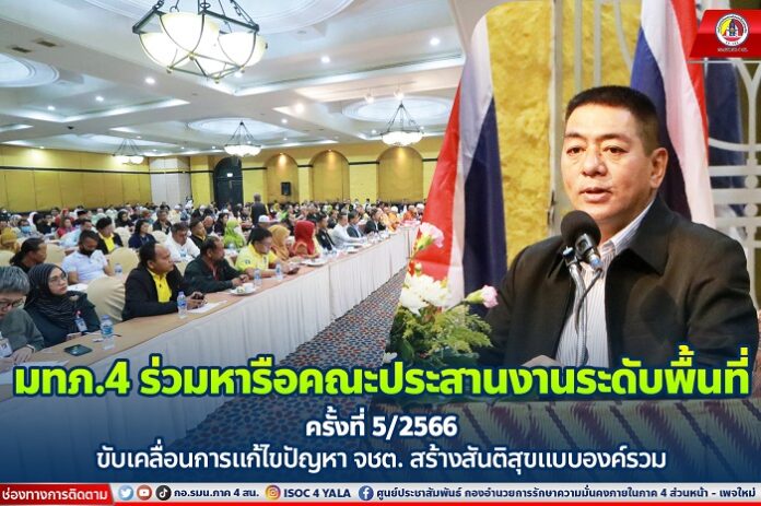 วันนี้ (17 กรกฎาคม 2566) เวลา 10.00 น. ที่โรงแรม ซี.เอส.ปัตตานี อำเภอเมือง จังหวัดปัตตานี พลโท ศานติ ศกุนตนาค แม่ทัพภาคที่ 4 / ผู้อำนวยการรักษาความมั่นคงภายในภาค 4 ในฐานะหัวหน้าคณะประสานงานระดับพื้นที่ พร้อมด้วย พลโท อุทิศ อนันตนานนท์ แม่ทัพน้อยที่ 4, พลตรี วรเดช เดชรักษา ผู้บัญชาการกองพลทหารราบที่ 5 / ผู้อำนวยการศูนย์สันติวิธีกองอำนวยการรักษาความมั่นคงภายในภาค 4 ส่วนหน้า และคณะฯ ร่วมประชุมกับคณะประสานงานระดับพื้นที่ ครั้งที่ 5 ประจำปี 2566 โดยมี พลเอก วัลลภ รักเสนาะ หัวหน้าคณะพูดคุยเพื่อสันติสุขจังหวัดชายแดนใต้ เป็นประธานประชุมหารือฯ และชี้แจงความคืบหน้ากระบวนการพูดคุย ฯ เพื่อรับทราบผลการดำเนินงาน ข้อเสนอแนะ และความคืบหน้าการพูดคุยเพื่อสันติสุขจังหวัดชายแดนภาคใต้ รับทราบความคิดเห็นของทุกฝ่าย ซึ่งเป็นตัวแทนของประชาชน กลุ่มองค์กรภาคประชาสังคมทั้งหมด 8 กลุ่ม ในพื้นที่ 3 จังหวัดชายแดนภาคใต้ และ 4 อำเภอของสงขลา เข้าร่วมการประชุมฯ